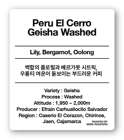 1) 페루 엘 세로 게이샤 워시드 Peru El Cerro Geisha Washed