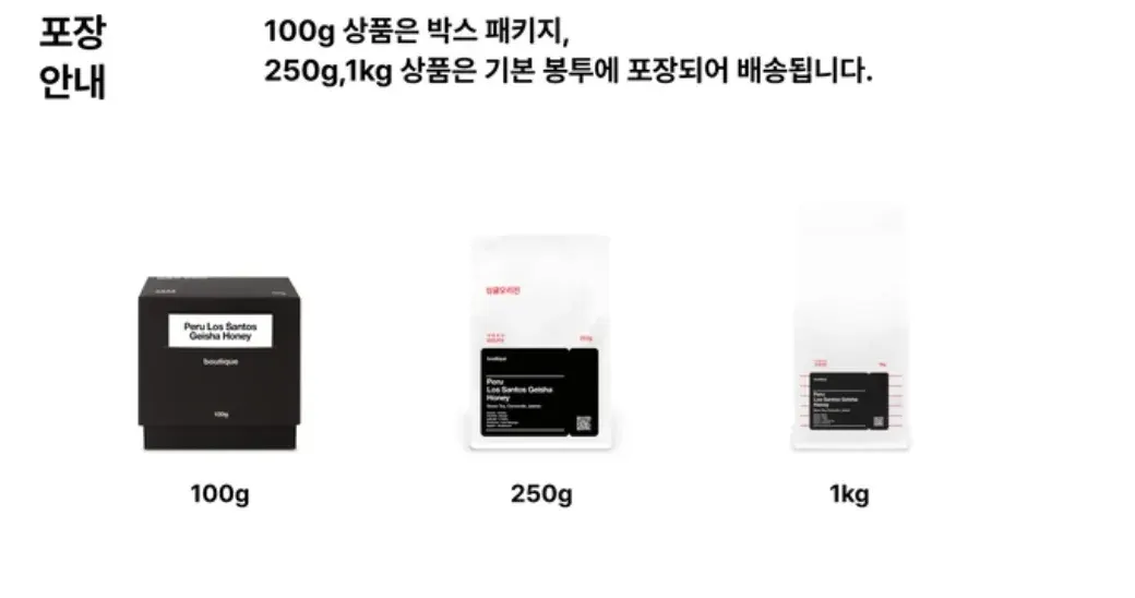 싱글 판매 단위는 1kg/ 250g이며 단가는 2가지 용량에 따라 다름.